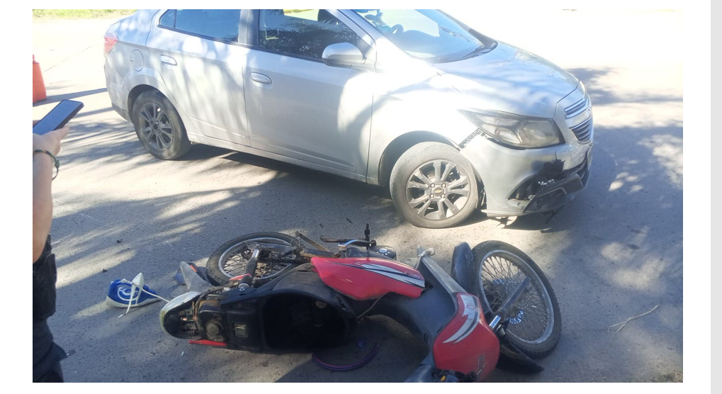 Por causas que se tratan de establecer, una motocicleta Brava 110 cc de color rojo, sin patente, conducida por una mujer de 58 años, impactó contra un automóvil Chevrolet gris, manejado por un hombre de 55 años.