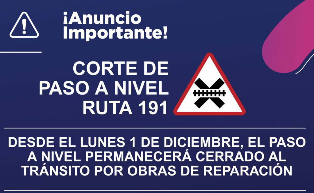 Desde la Secretaría de Seguridad informaron que el corte en el paso a nivel de Ruta 191 está previsto para concretarse en las próximas horas, una vez que Ferrocarriles habilite el paso alternativo por Basavilbaso, para garantizar la circulación segura.