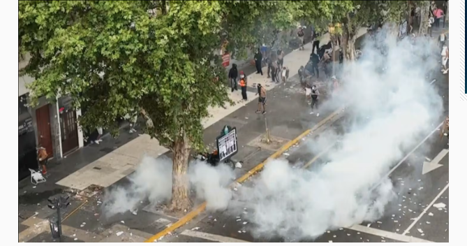 La Policía hizo un cordón humano desde Rodríguez Peña hacia Rivadavia y también desde Hipólito Yrigoyen mientras que se escuchaban detonaciones. Los manifestantes comenzaron a retirarse, mientras personal de la Policía Federal, Gendarmería y la Prefectura Naval activó cordones alrededor del Palacio.