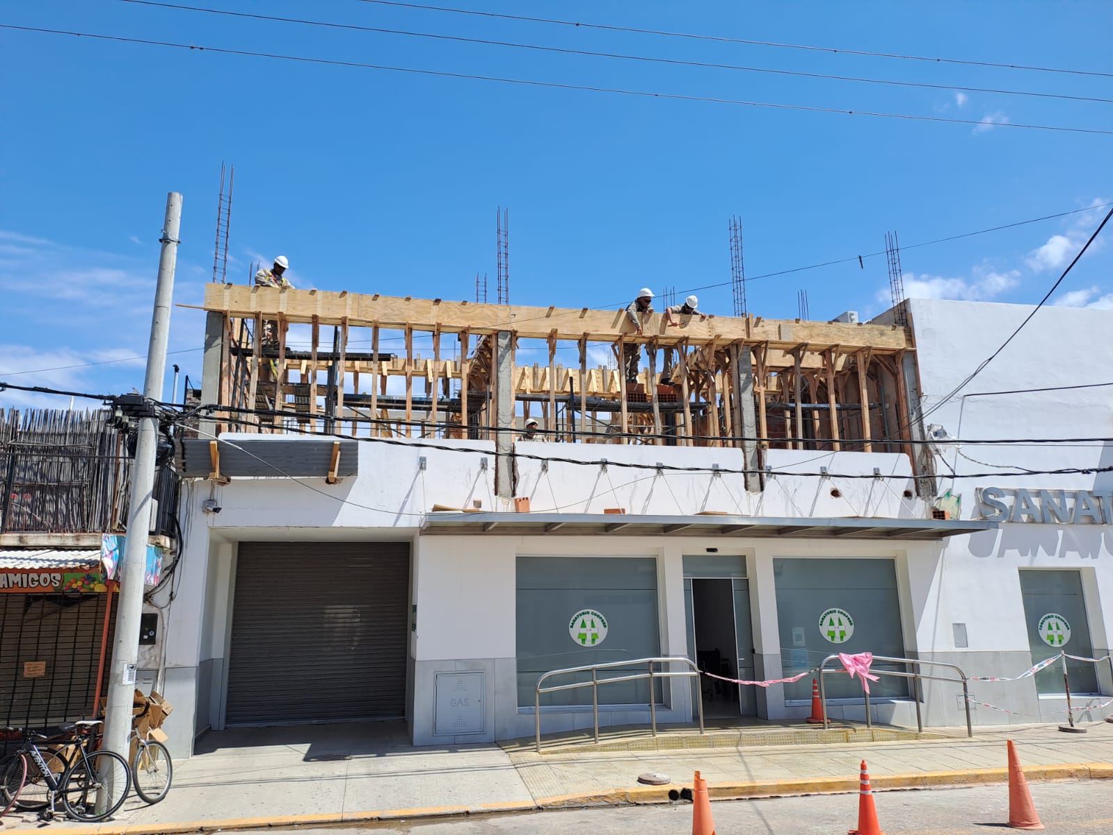 En el Sanatorio Coopser, se está construyendo la losa sobre el primer piso del nuevo sector de atención al público y acceso de ambulancias, ampliando la capacidad de atención y consultorios.