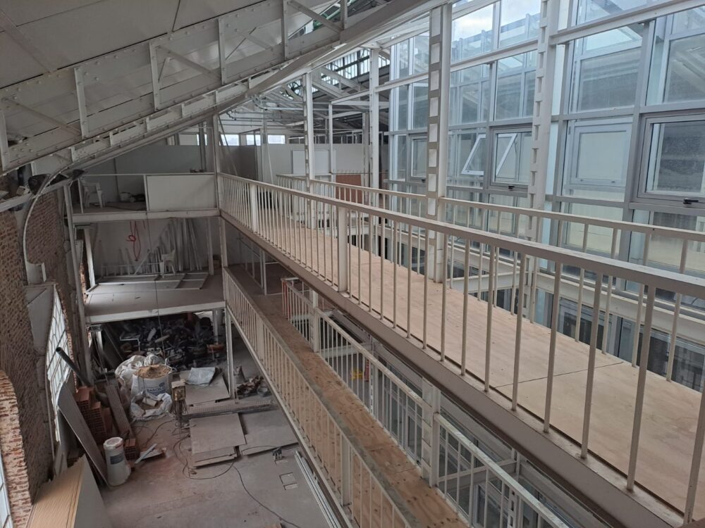 Ya se encuentran en ejecución los divisores de oficinas con estructura metálica enchapada en melamina.