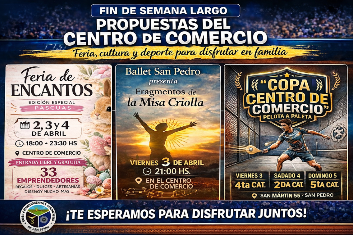 El Centro de Comercio, Industria y Turismo de San Pedro prepara un fin de semana largo con múltiples propuestas que combinan feria, espectáculos y deporte, con el objetivo de acompañar a los emprendedores locales y generar espacios de encuentro para toda la comunidad.