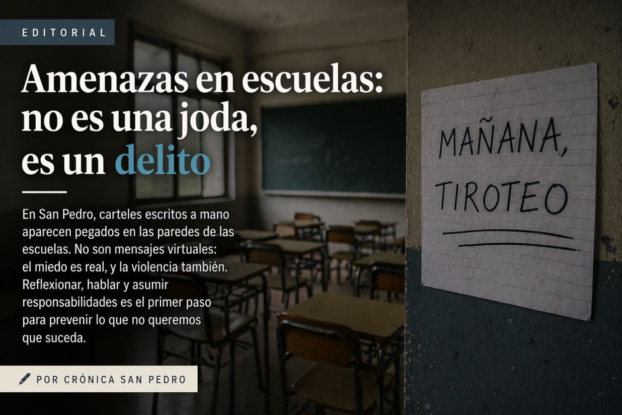 Lo que empezó como mensajes aislados hoy se repite con una frecuencia alarmante. En San Pedro, en las últimas horas, volvieron a aparecer amenazas en escuelas secundarias con frases que ya no pueden ser tomadas a la ligera: “mañana, tiroteo”.