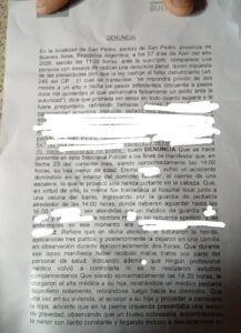 La madre describió reiterados intentos por obtener atención médica: “Empecé a golpear puertas porque mi nena tenía un golpe en la cabeza y no la revisaban. Me hablaban mal, me cerraban la puerta en la cara. Me decían que ya me habían respondido cuando no era así”.