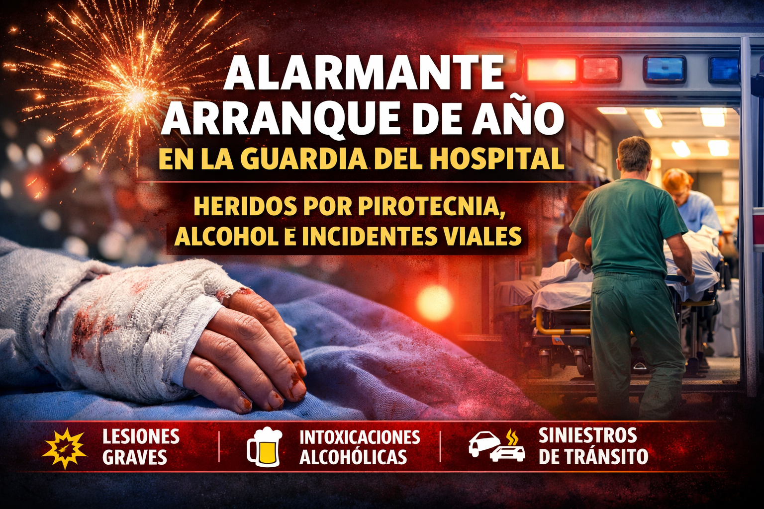 La guardia del Hospital tuvo un comienzo de año intenso y preocupante, con múltiples intervenciones desde los primeros minutos del 1° de enero, principalmente por el uso de pirotecnia, intoxicaciones alcohólicas y siniestros viales.