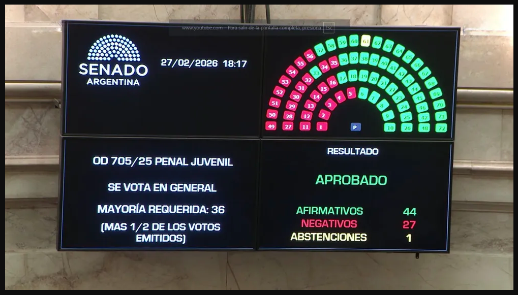 En una votación que marca un antes y un después en el sistema penal argentino, el Senado de la Nación aprobó y convirtió en ley la reforma del Régimen Penal Juvenil, que establece la baja de la edad de imputabilidad de 16 a 14 años.