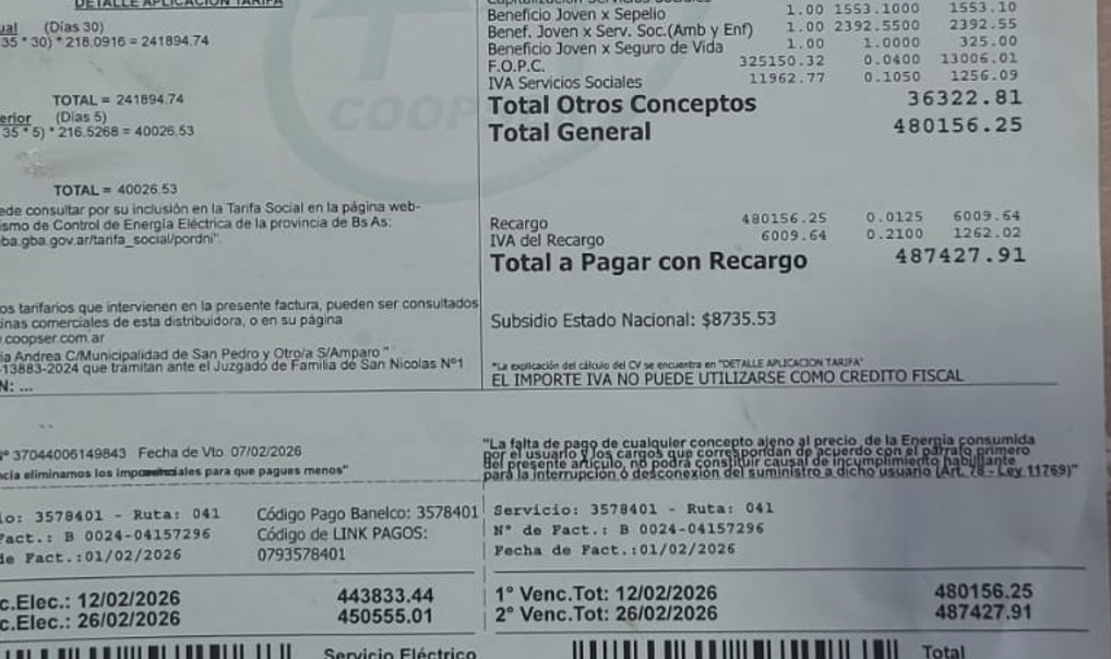 Una trabajadora municipal, enfermera de un centro de salud de nuestra ciudad con 20 años de trayectoria profesional, vive un momento de profunda angustia por el reciente aumento en su factura de electricidad. “Gano un millón de pesos y tengo que pagar casi 500 mil de luz. ¡Es una locura! Son 300 mil pesos más que la boleta anterior”, expresó, visiblemente afectada tras recibir el nuevo recibo de Coopser, la cooperativa que distribuye la energía eléctrica en el Partido de San Pedro