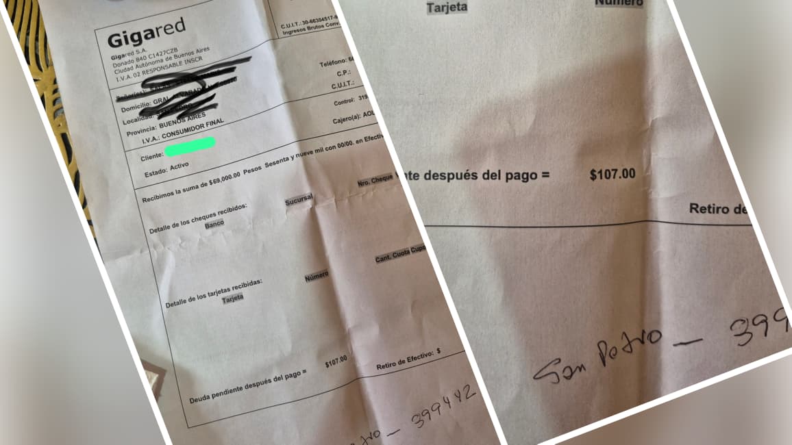 Ya en su domicilio, junto a su pareja —ambos jubilados— advirtieron que en la boleta impresa figuraba claramente el detalle “deuda pendiente: $107”, y no $107.000. Ante la duda, la mujer se comunicó telefónicamente con la central de la empresa, donde le indicaron que debía regularizar la totalidad de la deuda “lo antes posible”, ya que el servicio podría quedar sujeto a corte.