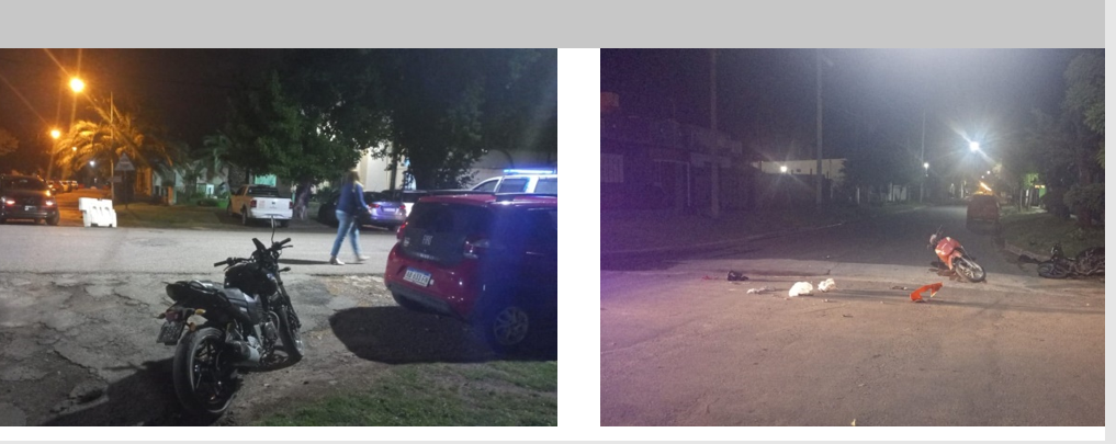 Horas más tarde, ya durante la madrugada, se produjo otro siniestro en la esquina de Colón y José Hernández, donde dos motocicletas de 110 cc protagonizaron una colisión. Los rodados eran conducidos por jóvenes de 20 y 24 años, resultando este último con lesiones leves.