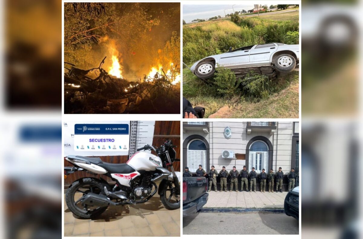 Durante las últimas horas, distintas intervenciones policiales se registraron en San Pedro, con fuerte presencia de la Unidad Táctica de Operaciones Inmediatas (UTOI) y personal de la Comisaría local. El trabajo incluyó operativos preventivos, persecuciones, recuperaciones de motocicletas robadas y el hallazgo de un rodado incendiado.
