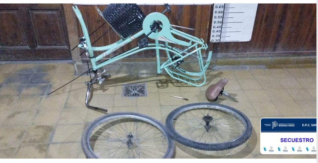 Durante una recorrida nocturna, personal policial halló una bicicleta playera rodado 29, color verde agua, abandonada y desarmada en Miguel Porta Bis y Rufa.