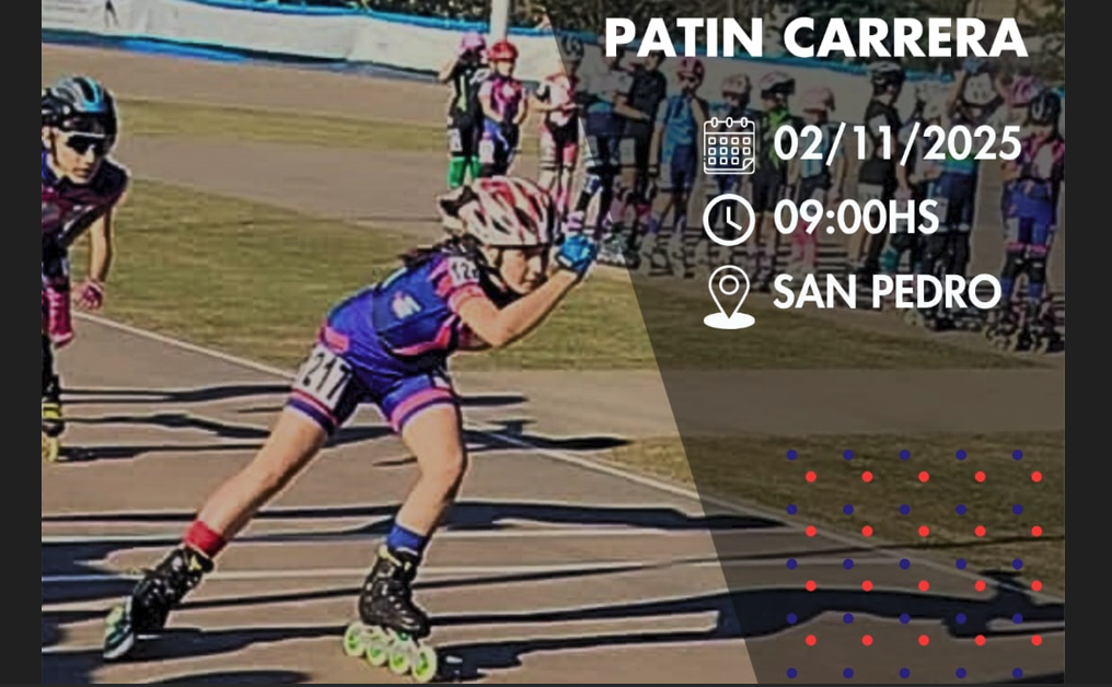 El próximo sábado 2 de noviembre, el Circuito Panorámico del Oeste será sede de la gran final del Torneo Regional de Patín Carrera, organizada por Huincaló San Pedro, que reunirá a deportistas de distintos puntos de la región en una jornada que promete velocidad, competencia y espíritu deportivo.
