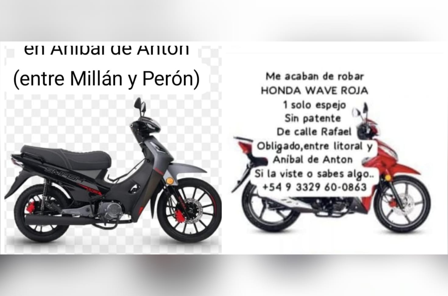 El segundo hecho fue reportado el domingo entre las 19 y 20 horas, cuando robaron una moto Honda Wave roja que estaba estacionada en Rafael Obligado, entre Litoral y Aníbal de Antón.