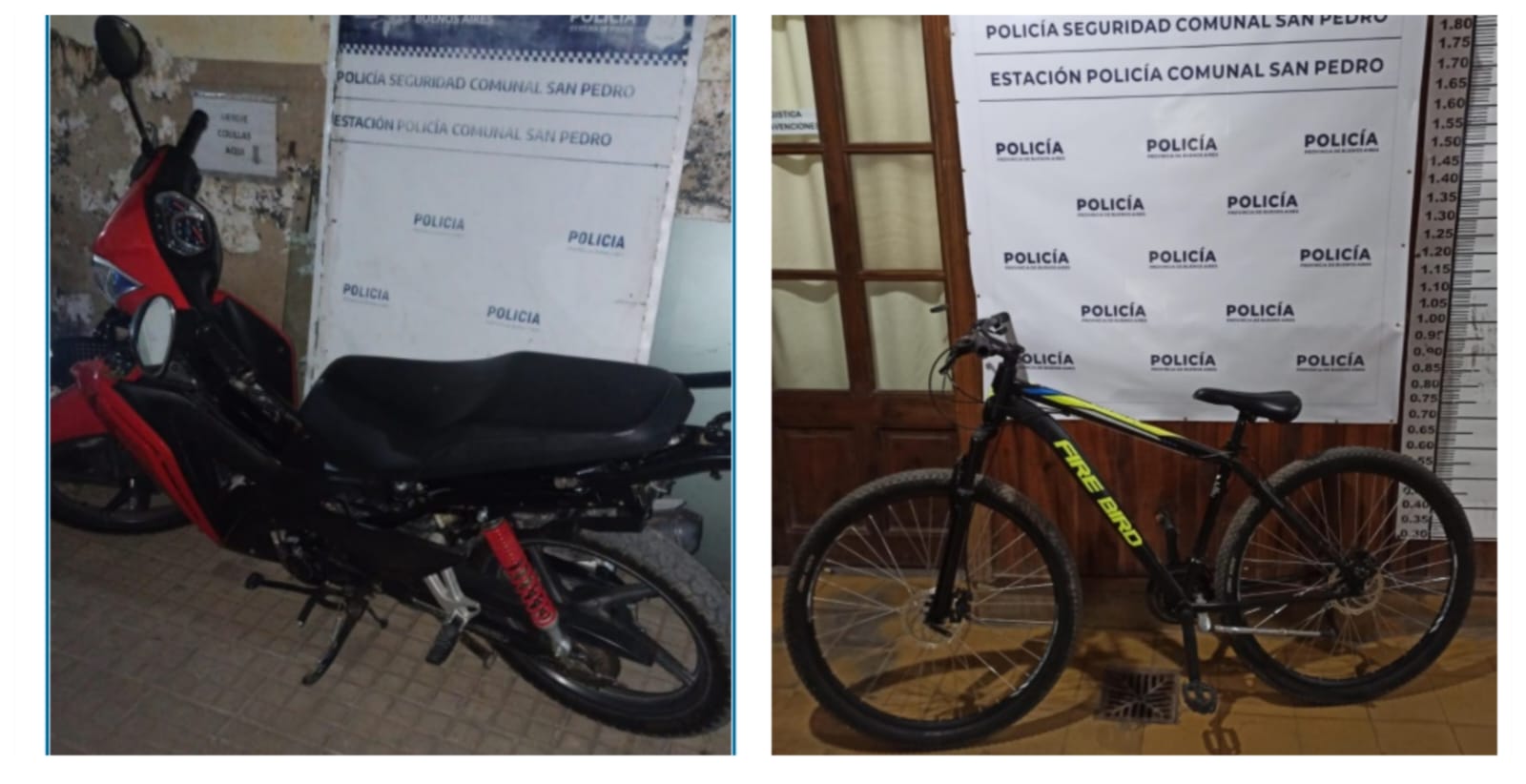 Durante las últimas horas, personal policial de San Pedro intervino en dos procedimientos que culminaron con el secuestro de una motocicleta y una bicicleta sustraída, en el marco de distintas actuaciones judiciales.