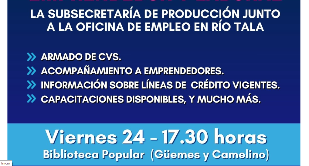 La Municipalidad de San Pedro, a través de la Subsecretaría de Producción y la Oficina de Empleo, realizará este viernes 24 desde las 17:30 una nueva Jornada de Fortalecimiento Emprendedor y Laboral en la localidad de Río Tala.