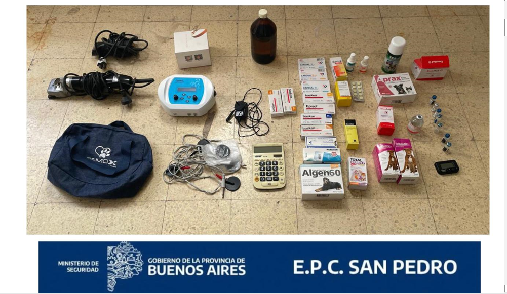 Los objetos fueron encontrados abandonados dentro de una obra en construcción ubicada en calle 9 de Julio y Litoral, en esta ciudad. El material robado pertenece a un consultorio veterinario situado en calle 9 de Julio al 600, propiedad de una mujer de 53 años, quien radicó la denuncia.