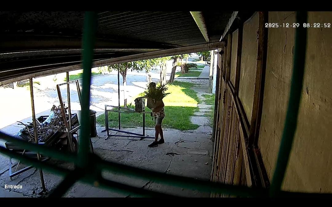 Según pudo reconstruir Crónica San Pedro, el episodio quedó registrado por cámaras de seguridad. En las imágenes se observa a un joven que llega al lugar ofreciendo plantas que llevaba en una caja. Tras golpear la puerta y no obtener respuesta inmediata, el individuo se retira del lugar llevándose un taladro que se encontraba apoyado en el exterior del taller.