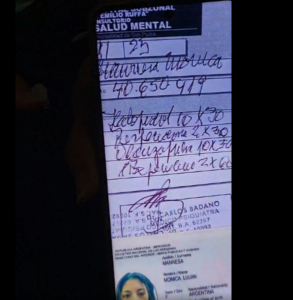 “Tenía inyectables, pastillas y rescates. Los rescates eran para doparla, para dejarla quieta, digamos. Porque según ellos, ella tenía brotes psicóticos”, expresó.